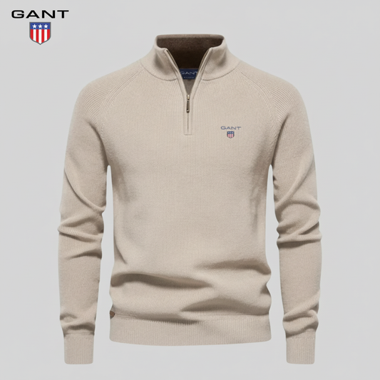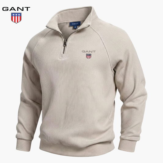 GANT™ Ribbstickad halvzip-tröja med fleecefoder